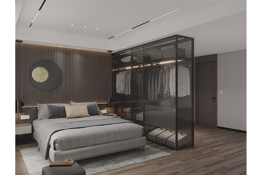 產(chǎn)品亮點:通體柜體搭配深灰色玻璃,減少空間壓抑感的同時提升產(chǎn)品高級感,臥室亦可“秀”。木格柵線條感強(qiáng),錯落有層次,提升了空間整體格調(diào)