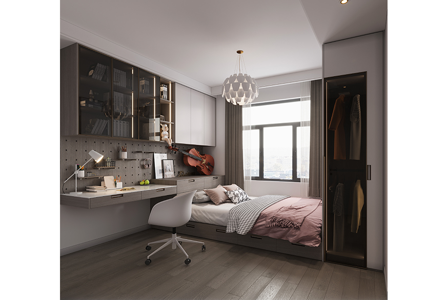 產品亮點:吊柜采用滿墻一字型,擁有超大的收納空間,中間植入洞洞板元素,“洞”察生活,可懸掛、擺放物品。高低臺面設計,減少空間沉悶感,高低錯落、層次感強。