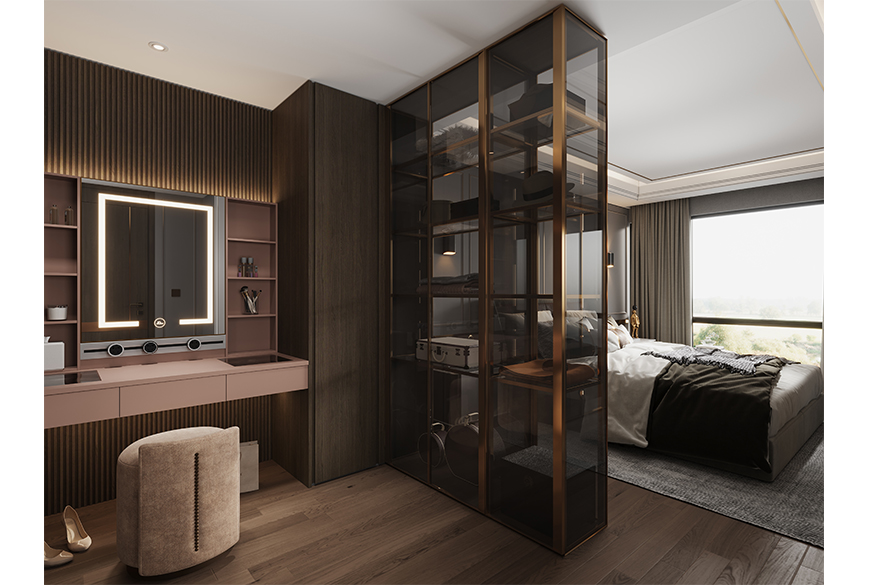 產(chǎn)品亮點:收納+展示+梳妝+洗漱多功能合一的臥室空間,將有限的空間創(chuàng)造無限的可能。運用豎向分割、虛實結(jié)合手法解決了傳統(tǒng)“超長一字型衣柜”沉悶、古板的痛點。莫蘭迪粉梳妝臺具有“兼容”“時尚”“快捷”“舒適”一體化功能。