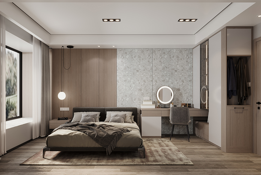 水磨石搭配天然細(xì)膩木紋理,個性十足又不失溫馨精致