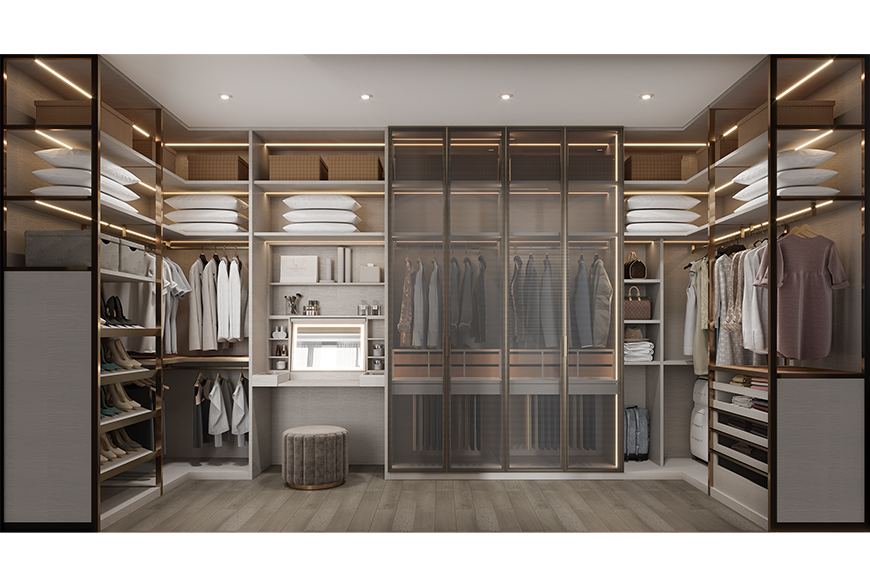 產(chǎn)品亮點:懸掛式抽屜桌“少即是多”由繁變簡趨于本質(zhì)的美。U型獨立衣帽間,強大的收納功能告別臟亂差