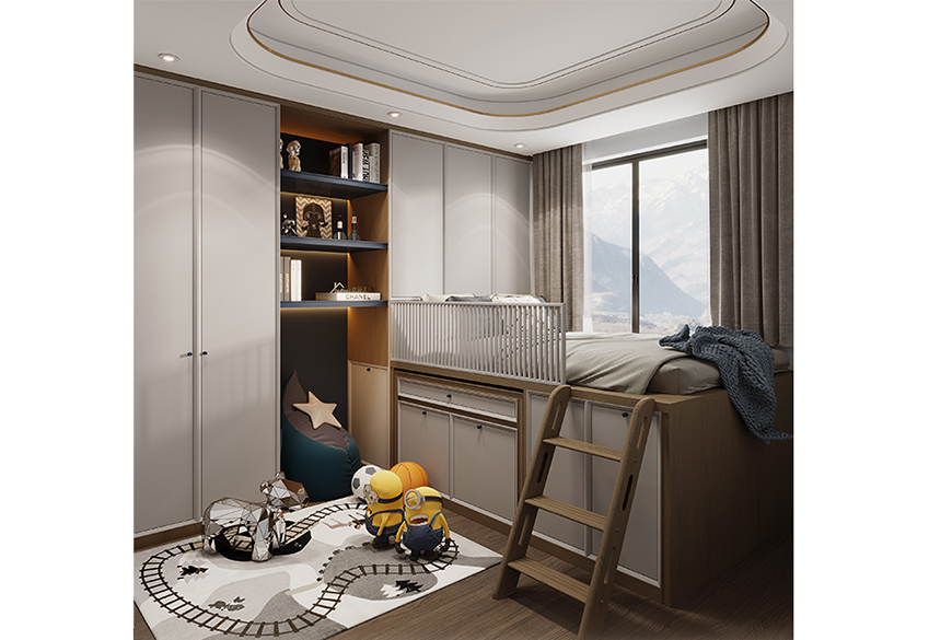 產(chǎn)品亮點(diǎn):運(yùn)用榻榻米加高的差異化設(shè)計(jì),打造“玩耍、學(xué)習(xí)、睡覺、收納”多元化一體空間