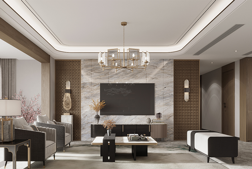 巖板搭配現(xiàn)代成品電視柜,大自然與云影東方情懷的完美結(jié)合