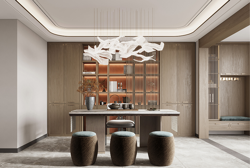 產(chǎn)品亮點:傳統(tǒng)中軸對稱設計手法,體現(xiàn)東方美學。緋紅布紋后背板搭配雙面發(fā)光LED燈,提升整體氛圍感